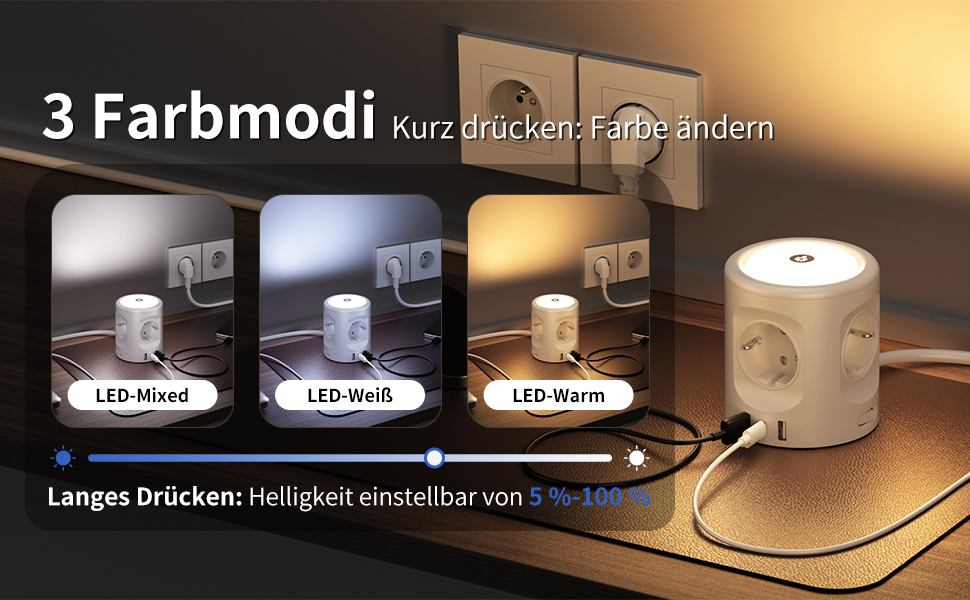 چراغ LED داخلی پاور استریپ، علاوه بر ایجاد روشنایی مناسب برای محیطهای تاریک، امکان روشن و خاموش کردن ساده را با یک کلید مجزا فراهم میکند. این ویژگی باعث میشود هنگام شب یا در محیطهای کم نور، دسترسی به پریزها راحت و ایمن باشد.