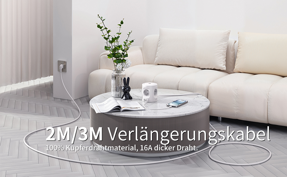 کابل ۲ متری برای دسترسی آسان به پریزهای دور