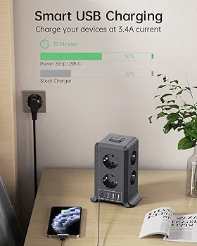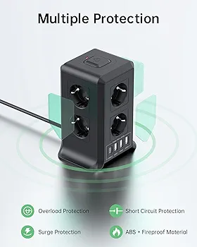 چندراهی برق تاور ۵ متری مدل ZYC03 یک راهحل حرفهای، ایمن و مدرن برای مدیریت برق و شارژ همزمان چندین دستگاه در خانه، محل کار یا اتاق گیمینگ است. طراحی عمودی (Tower Design) این محصول باعث میشود فضای بسیار کمتری نسبت به چندراهیهای سنتی اشغال کند و در عین حال دسترسی آسانتری به پریزها فراهم شود.