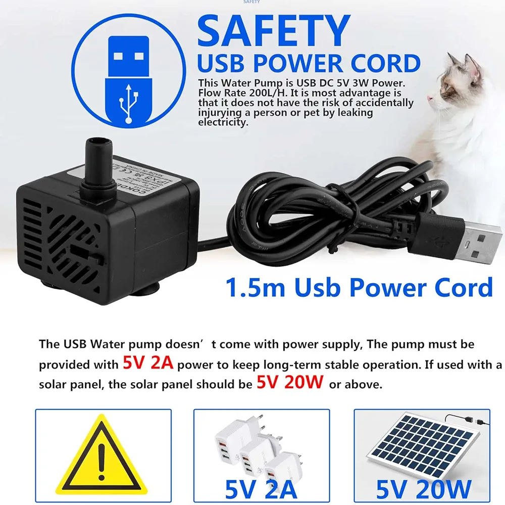 یکی از ویژگیهای برجسته این محصول، کارکرد ایمن با ولتاژ پایین 5 ولت است که خطر برقگرفتگی را به حداقل میرساند و برای محیطهای خانگی کاملاً مناسب است. پمپ COKDEZ قادر است آب را تا ارتفاع تقریبی 1 متر بالا ببرد و جریان آبی یکنواخت و پایدار ایجاد کند. این ویژگی باعث میشود برای فوارههای تزئینی، آکواریومهای خانگی، و حتی گلخانههای هیدروپونیک کوچک کاملاً مناسب باشد.