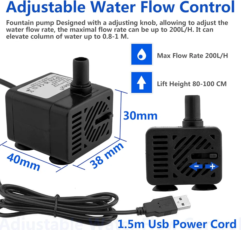 پمپ COKDEZ برای آکواریومهای کوچک تا متوسط و فوارههای خانگی مناسب است و جریان آب تا 200 لیتر در ساعت را تامین میکند.