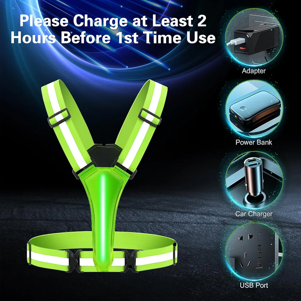 جلیقه شبرنگ LED شارژی مخصوص دویدن و دوچرخهسواری