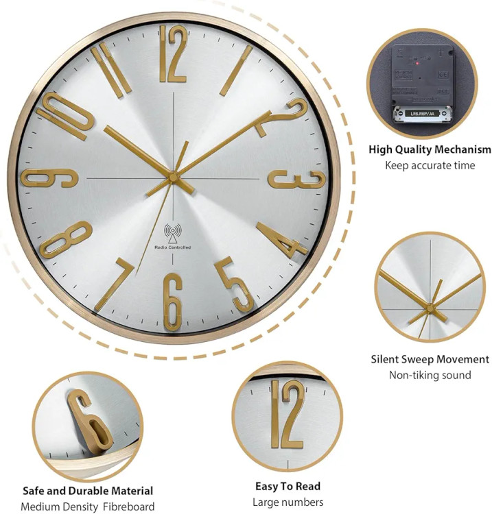 ساعت دیواری رادیو کنترلشده NESIFEE ترکیبی از دقت، طراحی مدرن و آرامش در خانه یا محل کار شماست. این ساعت با قابلیت تنظیم خودکار زمان از طریق سیگنال رادیویی، همیشه دقیق است و دیگر نیازی به تنظیم دستی ساعت ندارید. موتور ساعت با فناوری حرکت بیصدا (Silent Sweep) ساخته شده است، بنابراین حتی در اتاق خواب یا محیطهای آرام، هیچ صدای تیکتیکی مزاحم شنیده نمیشود.
